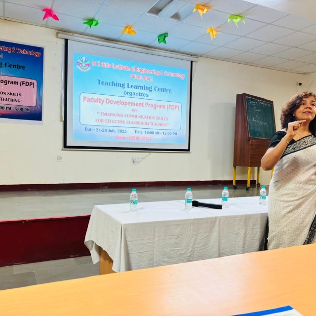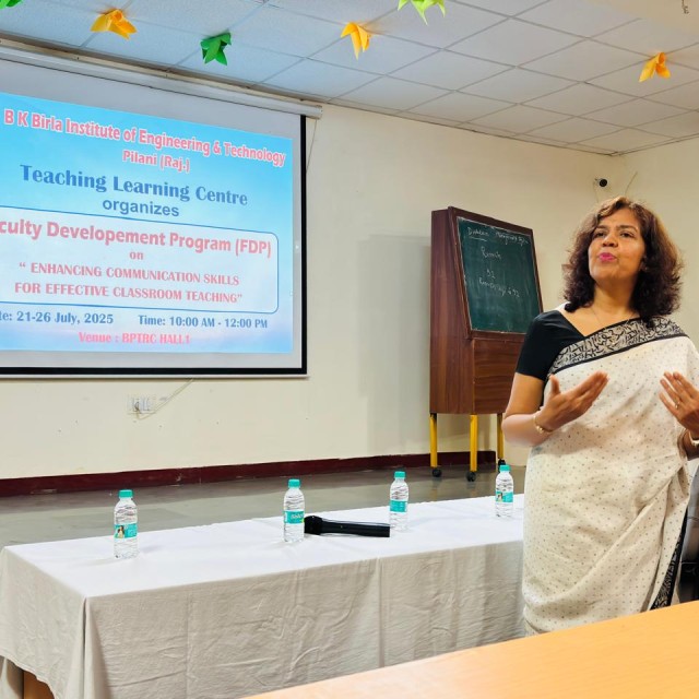 The Teaching and Learning Centre (TLC) at B.K. Birla Institute of Engineering and Technology (BKBIET), Pilani, successfully organized a One-Week Faculty Development Programme (FDP) from 21st to 26th July 2025 on the theme “Enhancing Communication Skills for Better Classroom Teaching”, under the ‘Train the Trainer’ initiative.