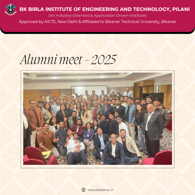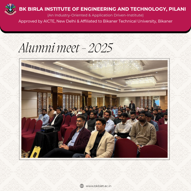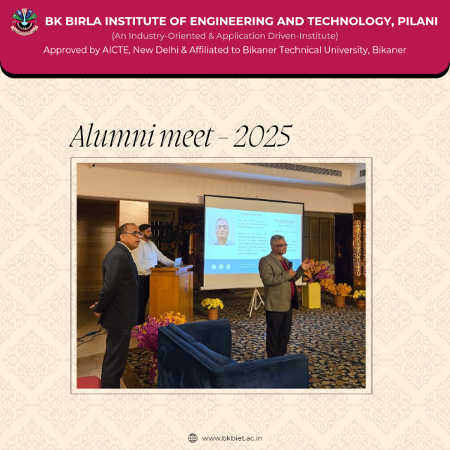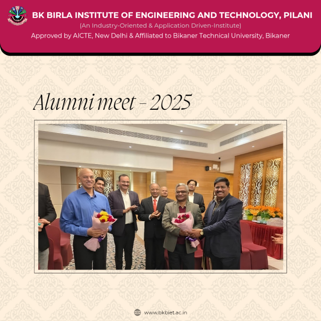 B K Birla Institute of Engineering and Technology, Pilani successfully organized an Alumni Meet at Jaipur, aimed at strengthening alumni–institution relations, fostering professional networking, and creating meaningful academic and career engagement opportunities for current students.