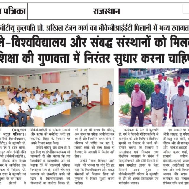 Towards the conclusion of the program, Prof. Garg interacted with media representatives from Pilani and shared detailed updates on several academic reforms underway at BTU. He also revealed that his visit included formal engagements for signing MoUs with BITS Pilani and CEERI Pilani to foster collaborative research, development, and academic exchanges.