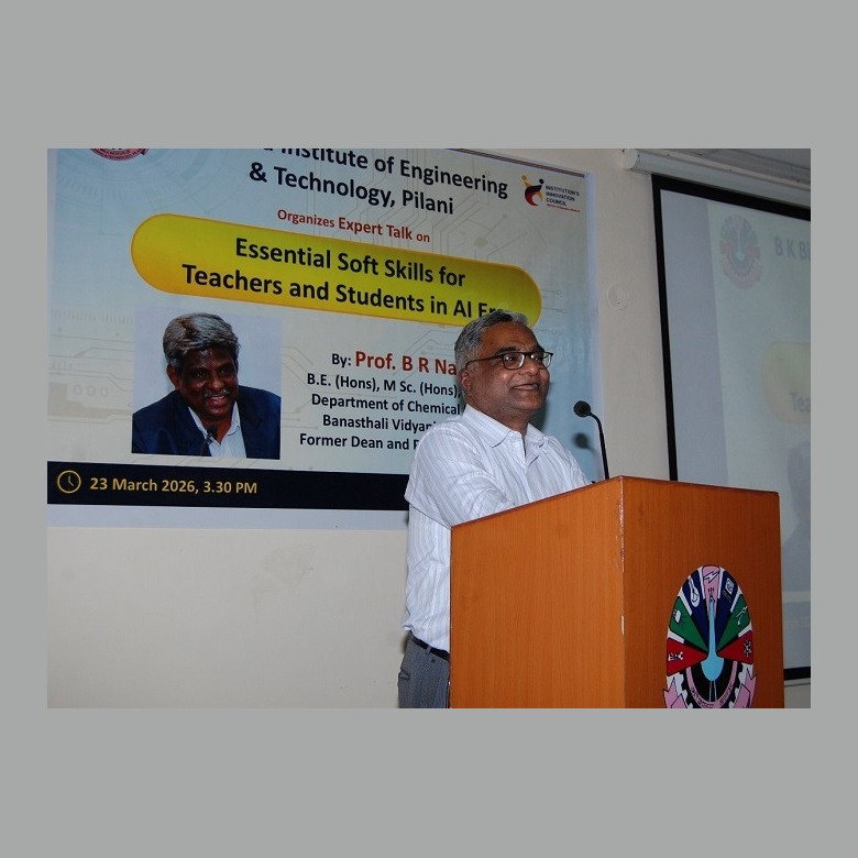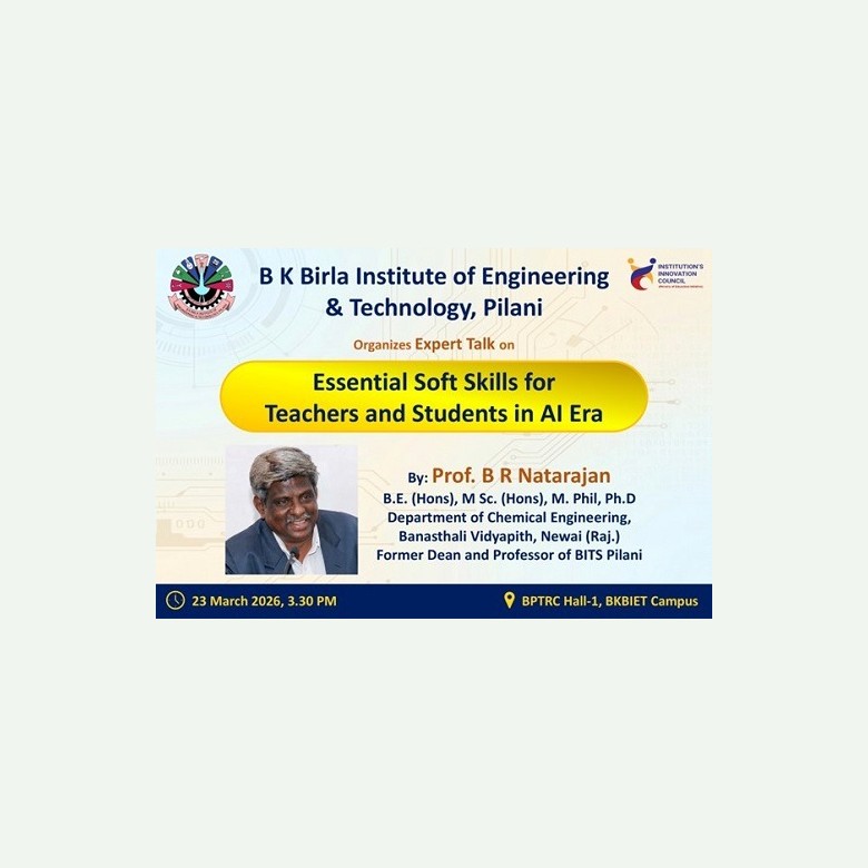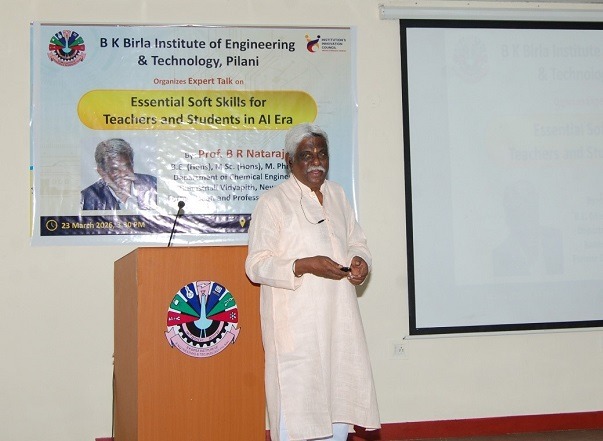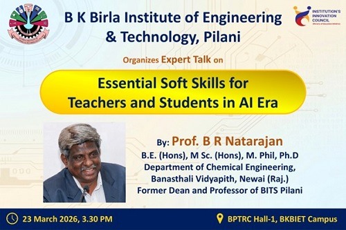 B K Birla Institute of Engineering & Technology (BKBIET), Pilani organized an expert talk on the topic “Essential Soft Skills for Teachers and Students in the AI Era” on 23 March 2026.