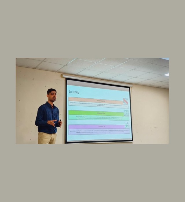 Students engaged actively throughout the session, asking thoughtful questions and expressing curiosity about the transformative role of AI in industry and research. The talk significantly enhanced their understanding of modern AI technologies and inspired many to explore advanced domains within the field.