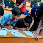 It was a wonderful day of ‘JOY OF GIVING WEEK ‘ named ‘ JOY OF TEACHING’ .We were planning how to divide the NIRMAAN kids, so that we can organise a small and interesting competition among them .We decided to divide them according to their classes .We divided them in 4 groups- Class 1 to 5, Class 6 to 8, Class 9 to 10, Class 11 to 12
