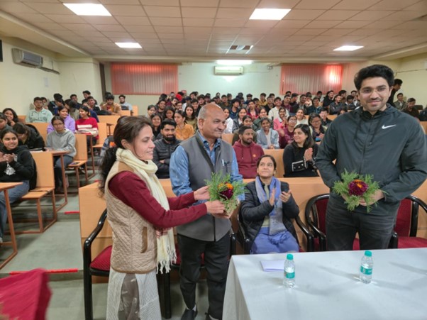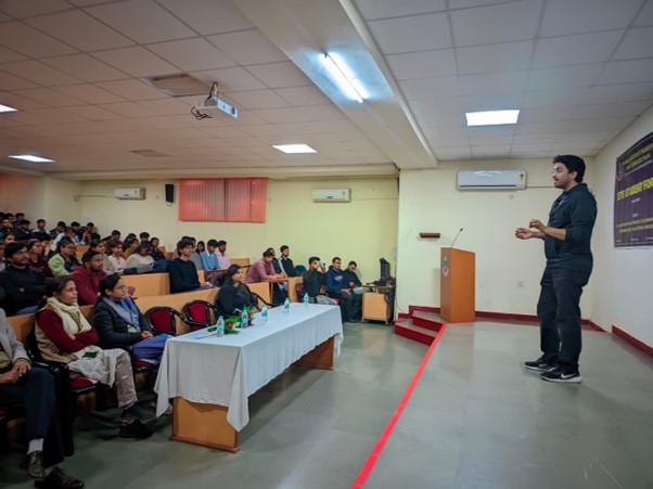 The session was delivered by Aman Dhattarwal, Founder of Apna College, a renowned educator, entrepreneur, and mentor to millions. He shared valuable insights on career planning, skill development, handling academic pressure, and aligning personal goals with professional growth. The talk was interactive, informative, and highly motivating for the students.