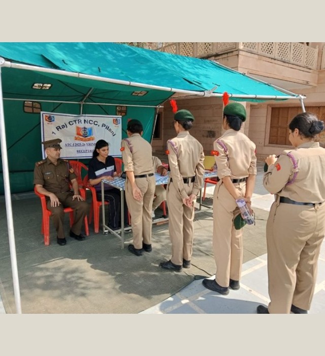 The NCC Annual Training Camp (ATC-17) for the session 2025–26 was conducted at Vrindavan, Bagar, Jhunjhunu from 11th to 20th September 2025, under the supervision of 1 RAJ CTR NCC, Pilani. A total of 88 cadets (16 SW and 72 SD) from various institutions participated, accompanied by PI staff and caretakers.