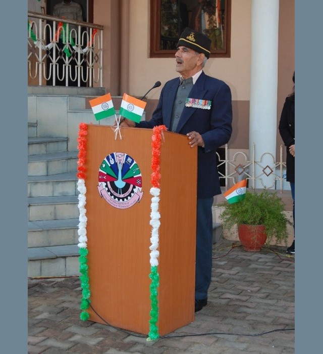 The special for the program Subedaar Major Honorary Captain R. L. Punia delivered an inspiring speech and shared his life journey, struggles, and experiences during the different wars. His words deeply moved the audience and motivated students to value the sacrifices made for the nation.