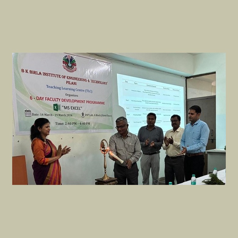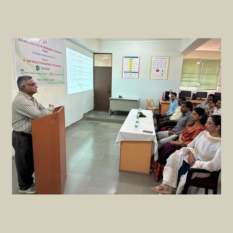 The Teaching Learning Centre (TLC) of BKBIET Pilani successfully concluded a six-day Faculty Development Program (FDP) on Microsoft Excel from 14 to 19 March 2026. The program, conducted over six days with two-hour sessions each day, was a significant initiative aimed at enhancing digital proficiency and promoting a data-driven work culture within the institution.