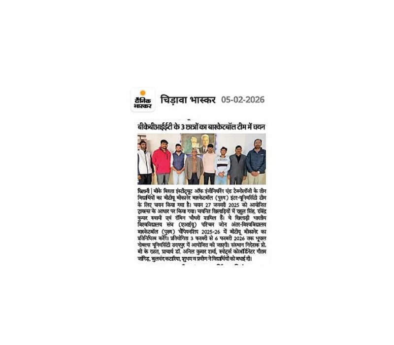 In a proud achievement for Bikaner Technical University (BTU), Bikaner, three students of Birla Institute of Engineering & Technology have been selected to represent the BTU Bikaner Basketball (Men) Team in the prestigious AIU West Zone Inter University Basketball (Men) Championship 2025–26.