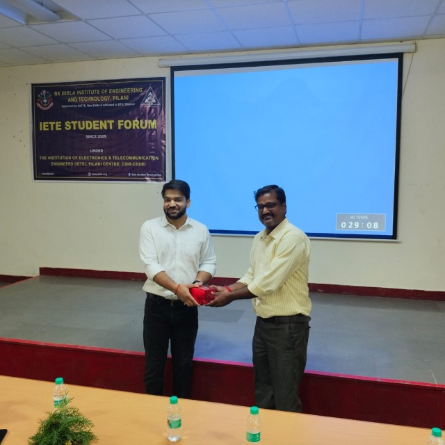 The event began with a bouquet presentation to the speaker by Dr. Krishna Meel, IETE Coordinator, followed by a welcome address. The seminar was honored by the presence and support of: Prof. Dr. B. K. Rout, Director, Dr. Anil Kumar Sharma, Principal, Dr. Nimish Kumar, PIC Academics & HOD, Dr. Krishna Meel, IETE Coordinator, Mr. Sanjeev Sultania, Digital Media Cell Coordinator, Mr. Suresh Kumar, Technical Support.