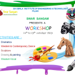 Here, at BKBIET Campus, Pilani, Swar Sangam is organising a workshop including activities like Dramatics, Western & Contemporary Dance, Sculpture, Drawing & Painting, Western Vocal, etc